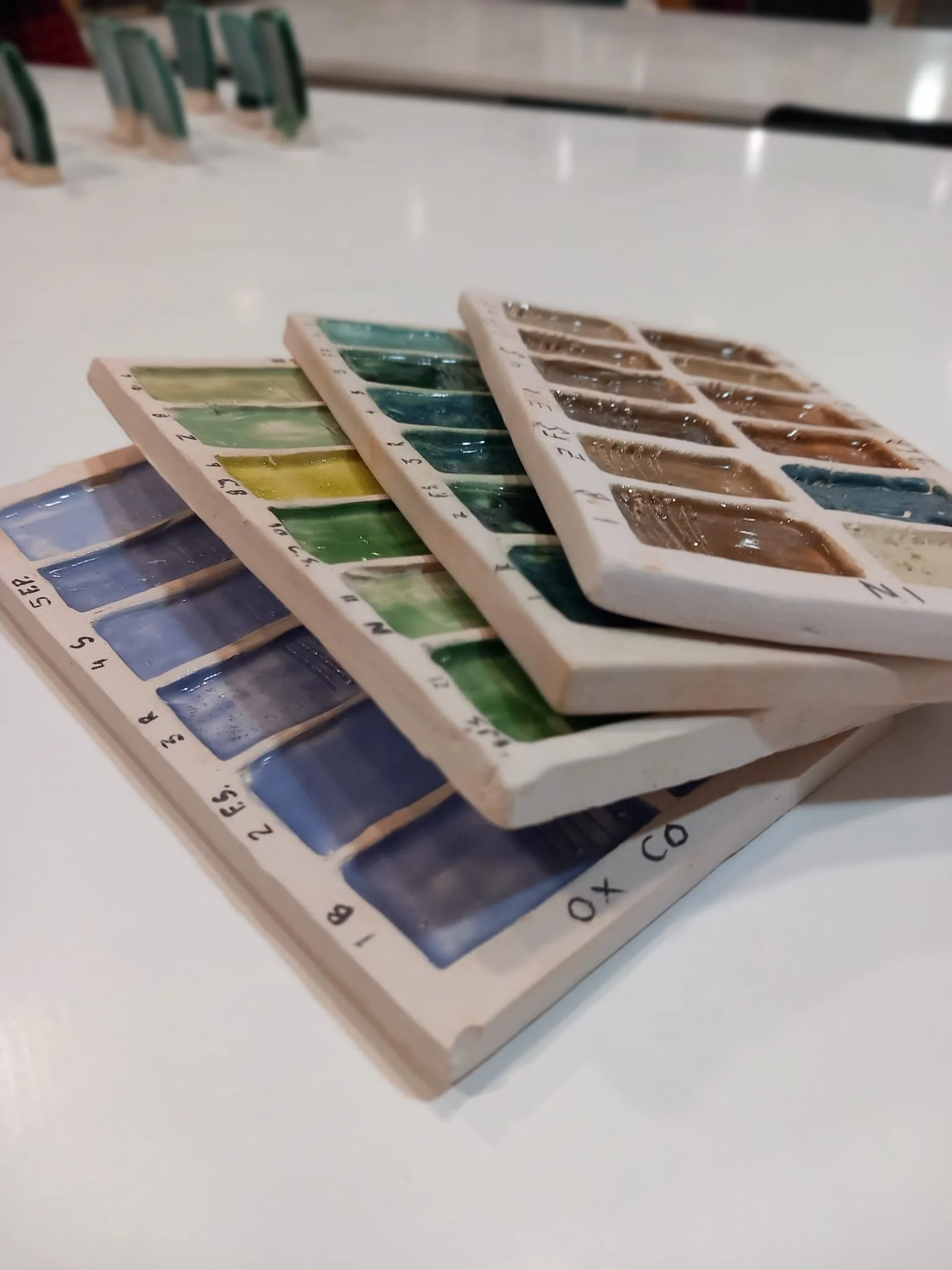 Finalmente, ponemos en común todos los resultados de la práctica, con el objetivo de poder continuar proyectos en cerámica usando nuestros propios colores y acabados.